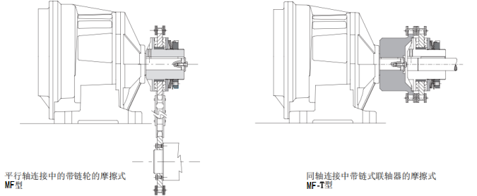 MF:平行軸傳動的基本型號,帶鏈輪、齒輪對或滑輪