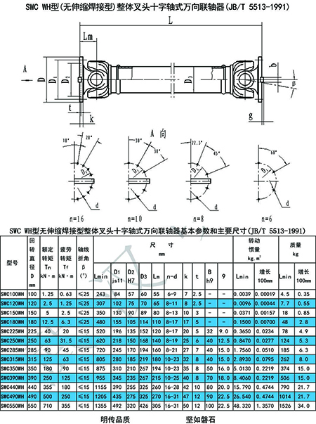 SWC型(整體叉頭)、SWP型(剖分軸承座)萬向聯(lián)軸器的主要特點: