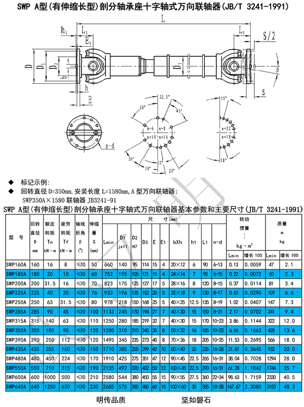 SWC型(整體叉頭)、SWP型(剖分軸承座)萬向聯軸器的主要特點: