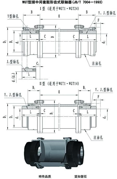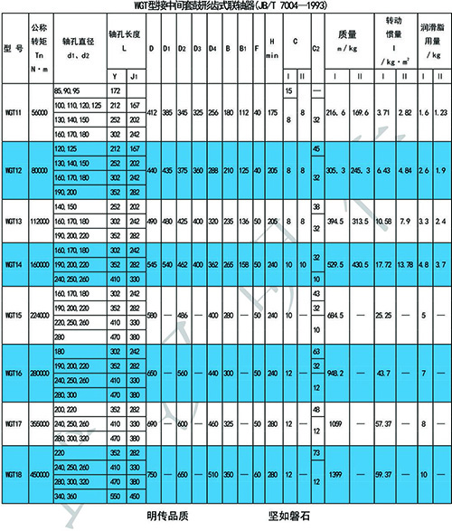 WGT型接中間套鼓形齒式聯軸器,適用于長距離聯接,公稱轉矩800~1400000N·m。